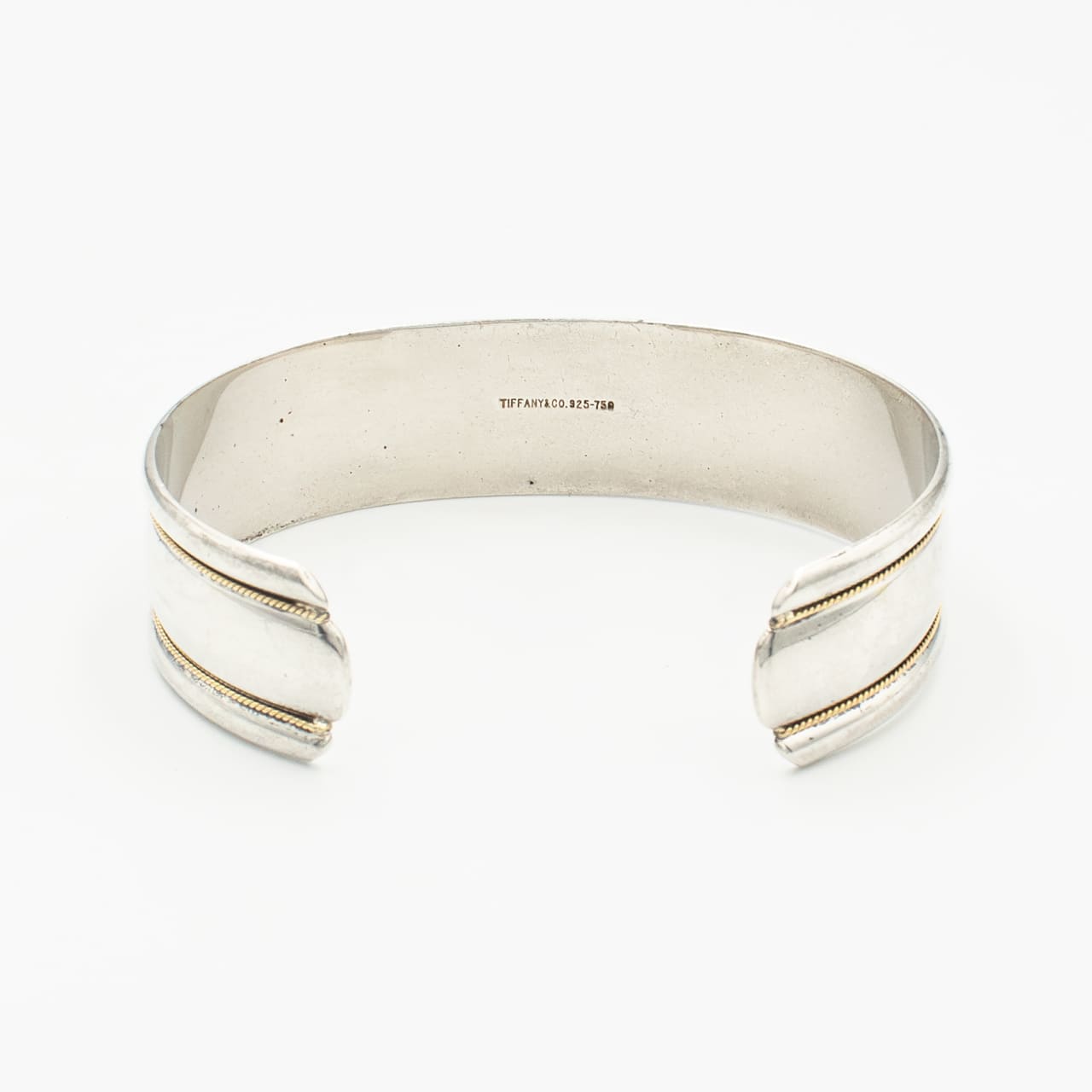 硬質な地金にロープのしなやかさを写し取った、ティファニーを象徴する意匠のカフブレスレットです。
