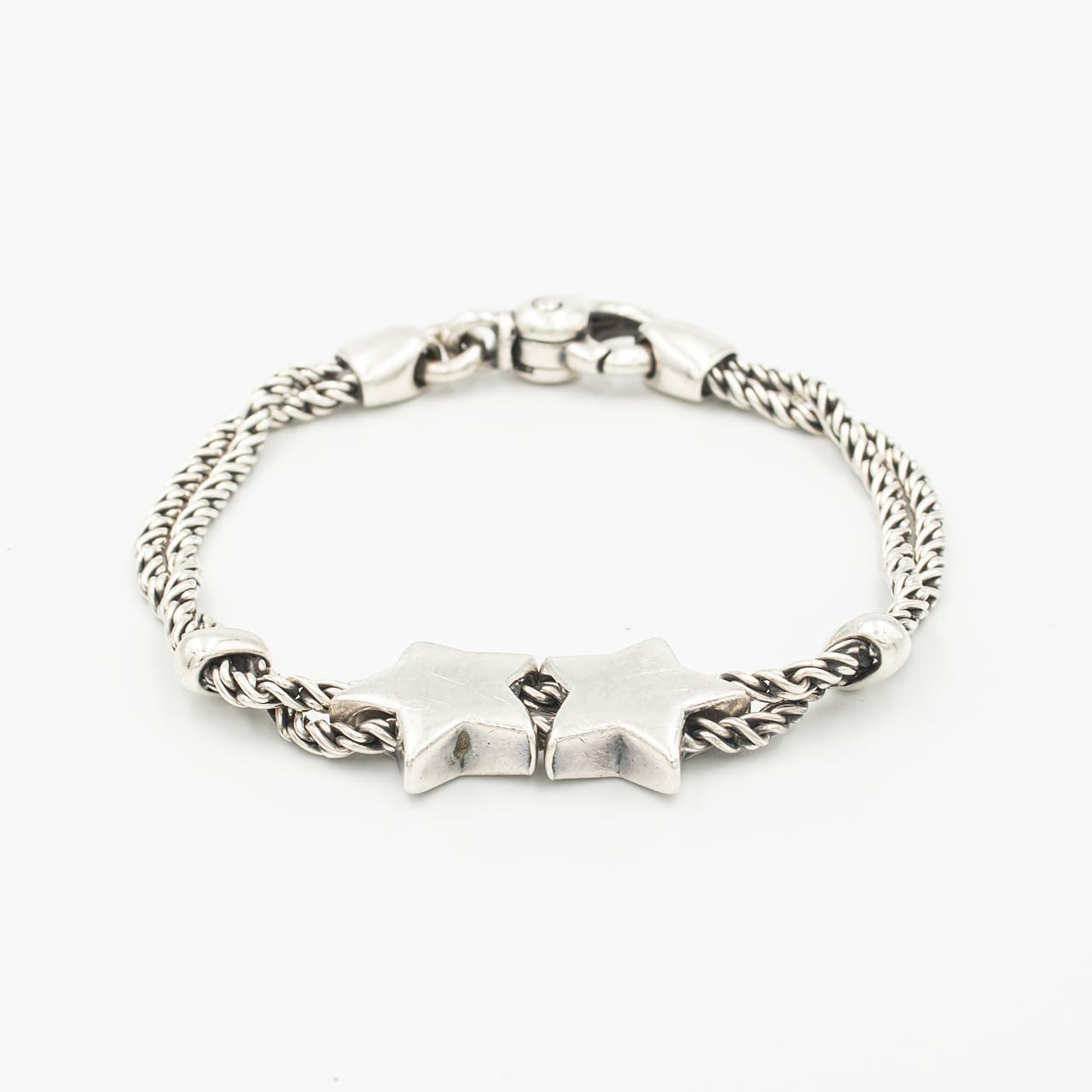 二本のロープモチーフのチェーンにスターのチャームをあしらった、1990年代前期ごろに見られるデザインのブレスレット。