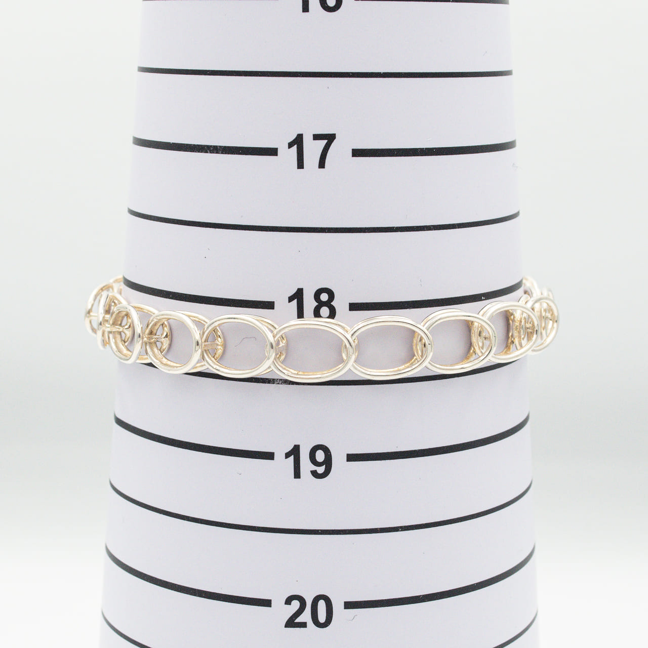二重のオーバルリンクが交互に噛み合うチェーンワークが特徴のブレスレット。