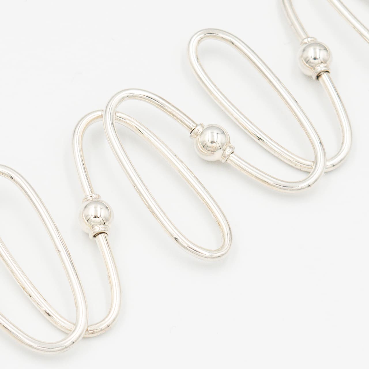 カフに近い感覚で着脱しやすく、単体で端正にまとめても、重ね付けでもツイストのリズムが効いてスタイリングが締まります。