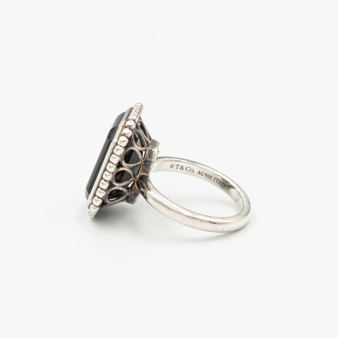 オニキスのブラックが装いを引き締め、エングレーブの繊細な線がクラシックな気配を漂わせます。モノトーンのスタイリングはもちろん、シルバーカラーのアクセサリーやメタルウォッチとのレイヤードにもよく馴染みます。デイリーに取り入れやすいサイズ感で、さりげなく個性を主張したい方に最適です。